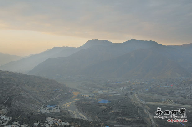 從萬(wàn)象洞口俯瞰武都區(qū),白龍江奔流而逝