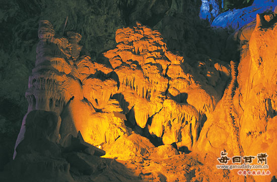 萬(wàn)象洞,位于隴南市武都區(qū)西15公里處,白龍江南岸楊龐村景山半山腰,因洞中有洞,乳石遍布,琳瑯多姿,宛如包羅萬(wàn)象的閬苑仙宮而得名。它形成于三億年前,屬西北典型的巖溶地貌。洞內(nèi)深不可測(cè),是目前我國(guó)開(kāi)發(fā)的最大的地下天然藝術(shù)宮殿。它名列中國(guó)四大名洞之一。其規(guī)模之大,藝術(shù)價(jià)值之高,享有“華夏第一洞”的盛譽(yù)。