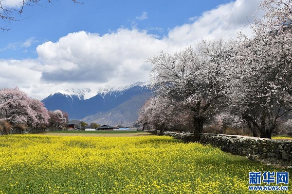 這是西藏林芝市米林縣派鎮(zhèn)索松村桃花盛開的田園風(fēng)光(2016年3月30日攝)。新華社發(fā)