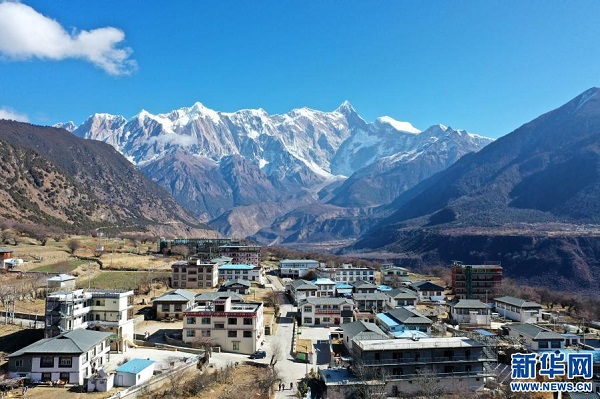 這是西藏林芝市米林縣派鎮(zhèn)索松村一角(無(wú)人機(jī)照片,1月28日攝)。新華社記者 詹彥 攝