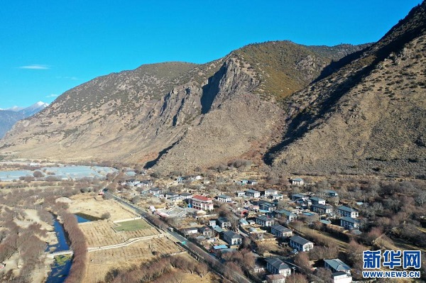 這是西藏林芝市巴宜區(qū)嘎拉村一角(無(wú)人機(jī)照片,1月29日攝)。新華社記者 詹彥 攝