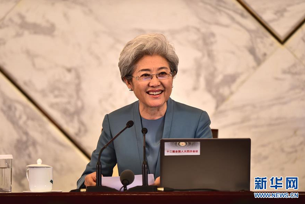 3月4日,十二屆全國人大四次會議在北京人民大會堂舉行新聞發(fā)布會。大會發(fā)言人傅瑩就大會議程和人大工作相關(guān)的問題回答中外記者的提問。新華社記者 金良快 攝