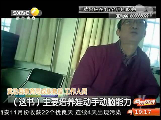 18日下午記者來到咸陽市武功縣教育局,在負(fù)責(zé)此次幼兒書籍征訂的成職教股辦公室,一位工作人員首先解釋了征訂書籍的必要性。