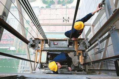 電梯維保人員對(duì)某小區(qū)電梯進(jìn)行檢查(資料照片)