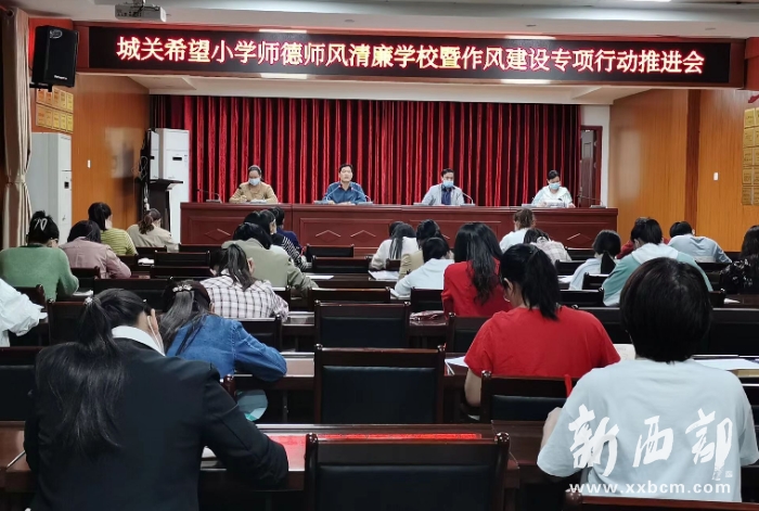 教師是立校之本,師德是教師之魂。商南縣城關(guān)希望小學(xué)黨支部為進(jìn)一步推進(jìn)黨建工作融合,深化學(xué)校師德建設(shè)工作,弘揚(yáng)新風(fēng)正氣,增強(qiáng)教師敬業(yè)意識(shí)、責(zé)任意識(shí)、服務(wù)意識(shí)和規(guī)范意識(shí)。近日,商南縣城關(guān)希望小學(xué)多措并舉開展了師德師風(fēng)建設(shè)工作。
