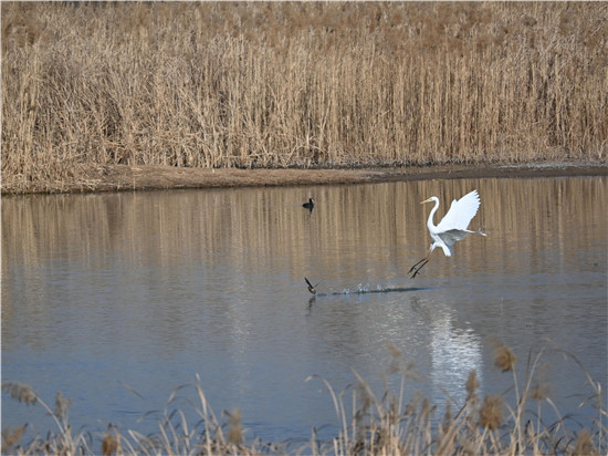 冬天,河道中蘆葦和灌叢鋪展開蒼黃的色調,相對僻靜的河段還能看到白鷺低飛,水鴨鳧冰。