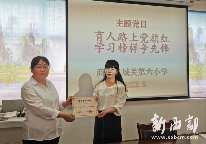 為發(fā)揮黨建引領(lǐng)和先進典型示范和輻射、帶動的作用,激勵全體教師立德修身,潛心治學(xué),爭當(dāng)育人先鋒、教學(xué)先鋒、服務(wù)先鋒、紅燭先鋒等,陜西省商洛市商南縣城關(guān)第六小學(xué)黨支部5月17日召開“育人路上黨旗紅 學(xué)習(xí)榜樣爭先鋒”主題黨日活動?;顒佑筛毙iL高麗主持,全體黨員和骨干教師代表參加。