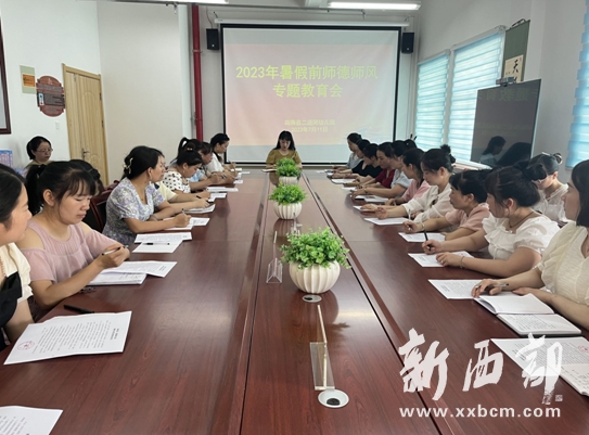 為進(jìn)一步規(guī)范教師職業(yè)道德行為,不斷提高教師職業(yè)道德素養(yǎng),樹立嚴(yán)格自律、愛崗敬業(yè)、為人師表的良好教師形象,增強(qiáng)教師教書育人的光榮感、責(zé)任感和使命感。2023年7月11日下午,陜西省商南縣二道河幼兒園召開“風(fēng)清氣正 執(zhí)紀(jì)守法”暑假前師德師風(fēng)專題教育會(huì)。