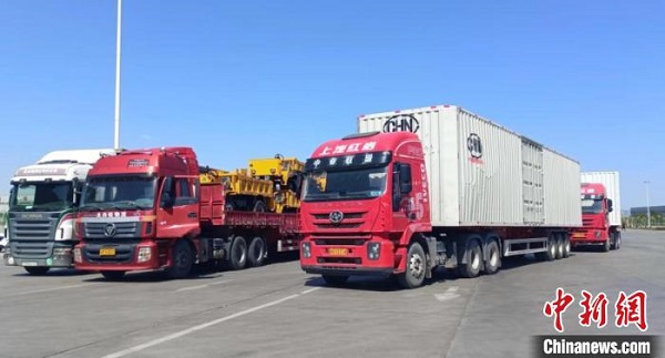 喀什經(jīng)濟開發(fā)區(qū)內(nèi)等待出國外運的車輛。 霍然 攝
