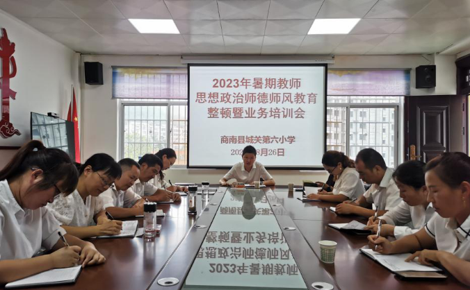 為進(jìn)一步加強(qiáng)師德師風(fēng)建設(shè),不斷提升教師師德修養(yǎng)和教育教學(xué)業(yè)務(wù)水平,根據(jù)縣科教體局《關(guān)于開展2023年暑期教師思想政治師德師風(fēng)教育整頓暨業(yè)務(wù)培訓(xùn)活動(dòng)的通知》精神,8月26日,商南縣城關(guān)第六小學(xué)暑期教師思想政治師德師風(fēng)教育整頓暨業(yè)務(wù)培訓(xùn)活動(dòng)如期舉行。會(huì)議由學(xué)校黨支部書記、校長(zhǎng)袁萍主持。