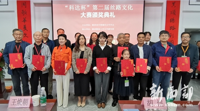 新西部網(wǎng)9月24日消息(記者王順利) 由陜西省中國現(xiàn)代文學(xué)學(xué)會主辦,陜西師范大學(xué)文學(xué)研究所、西安外事學(xué)院協(xié)辦,寶雞科達(dá)特種紙業(yè)有限責(zé)任公司承辦的“科達(dá)杯”第二屆絲路文化大賽頒獎典禮今天在陜西省寶雞市岐山縣蔡家坡鎮(zhèn)舉行。