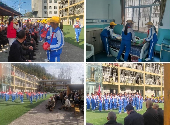 校長(zhǎng)袁萍代表學(xué)校向老人們送去香皂、洗衣粉、日用紙巾等生活用品。學(xué)生們爭(zhēng)先恐后地為老人打掃房間、疊被子,給老人們講故事,勞動(dòng)之余還為老人們獻(xiàn)上精彩的文藝表演,其中功夫扇《精忠報(bào)國(guó)》、朗誦《我和我的祖國(guó)》、舞蹈《小城謠》迎來(lái)了老人們陣陣熱烈的掌聲,同學(xué)們個(gè)個(gè)忙得汗流浹背,老人們樂(lè)得合不攏嘴。