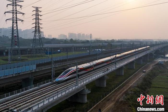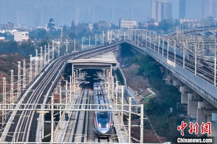 中新網(wǎng)成都11月19日電 (記者 劉忠俊 王鵬)11月19日清晨,試驗列車55301次CR400AF-Z型復興號智能動車組從成都東站駛出,標志著新建的四川成都至宜賓高速鐵路(下稱:“成宜高鐵”)聯(lián)調(diào)聯(lián)試結(jié)束,開始進入運行試驗階段。
