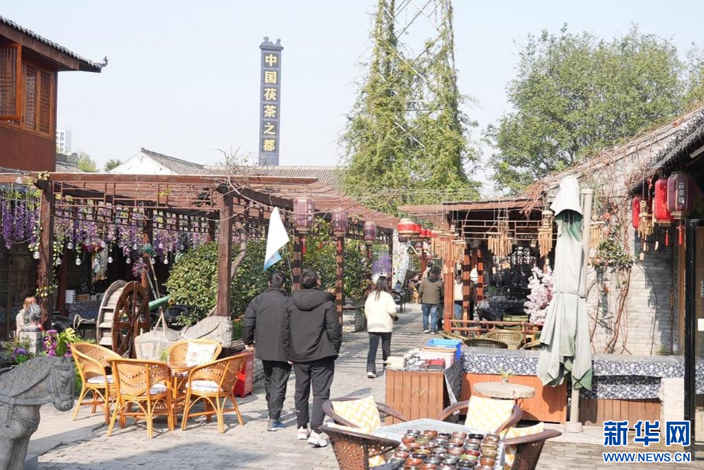 ??▲11月14日午后,在涇河新城茯茶鎮(zhèn),游客們逛茯茶鎮(zhèn)商業(yè)街。新華網(wǎng) 楊喜龍 攝