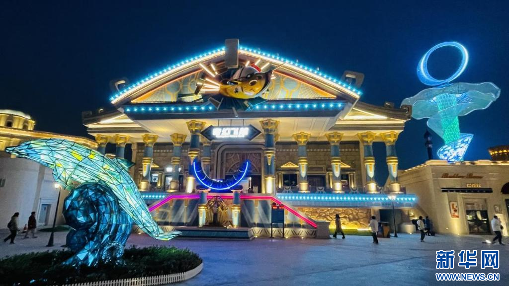 ?▲11月14日傍晚,在“絲路歡樂世界”,游客們前往“奇幻飛越”場館體驗娛樂項目。新華網(wǎng) 楊喜龍 攝