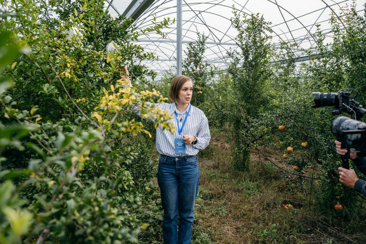 ▲10月12日,歐亞主流媒體考察團(tuán)成員在陜西省渭南市潼關(guān)縣軟籽石榴產(chǎn)業(yè)園內(nèi)采訪調(diào)研。新華社發(fā)(朱軍強(qiáng) 攝)