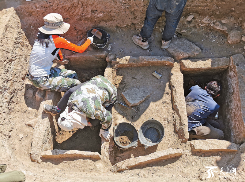 2021年夏季,考古工作者在呼斯塔遺址發(fā)掘現(xiàn)場作業(yè)。