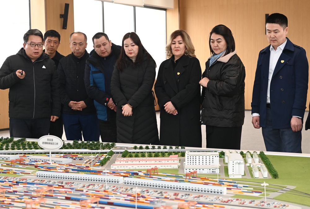 ?? 2月29日,來自西安愛菊集團(tuán)哈薩克斯坦工廠的員工代表參觀了解中歐班列西安國(guó)際港站。新華社記者 李一博 攝