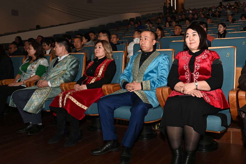 ?? 2月29日,來自西安愛菊集團(tuán)哈薩克斯坦工廠的員工代表在位于西安浐灞國(guó)際港的長(zhǎng)安樂·一帶一路文化藝術(shù)中心觀看演出《無(wú)界·長(zhǎng)安》。新華社記者 李一博 攝
