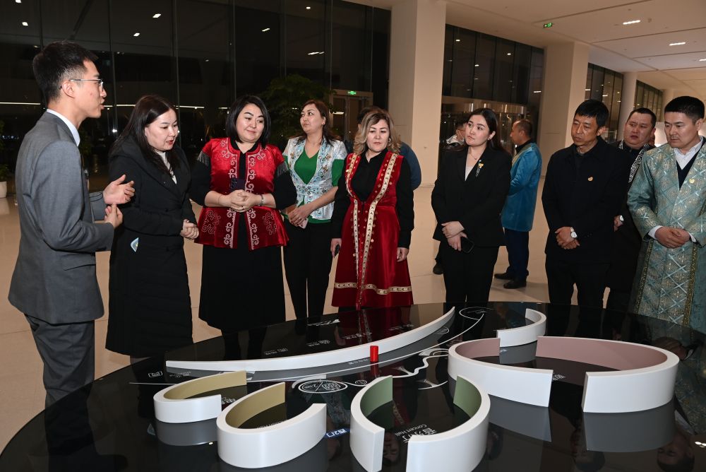 ?? 2月29日,來自西安愛菊集團(tuán)哈薩克斯坦工廠的員工代表在位于西安浐灞國(guó)際港的長(zhǎng)安樂·一帶一路文化藝術(shù)中心參觀。新華社記者 李一博 攝