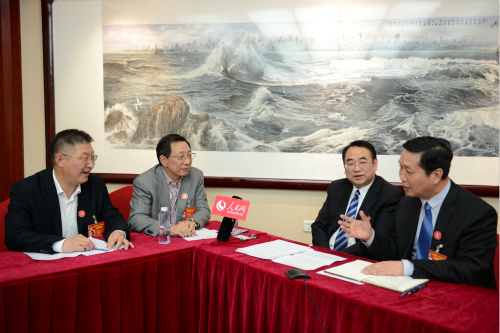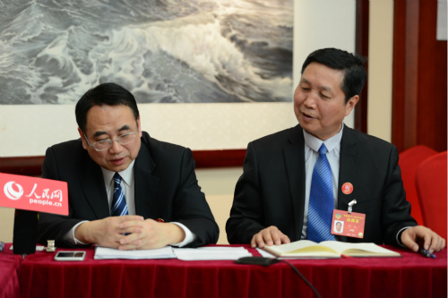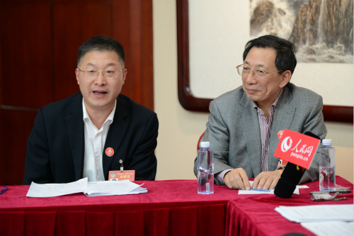 全國政協(xié)委員章義和(左)在發(fā)表自己的看法。(攝影 熊旭)