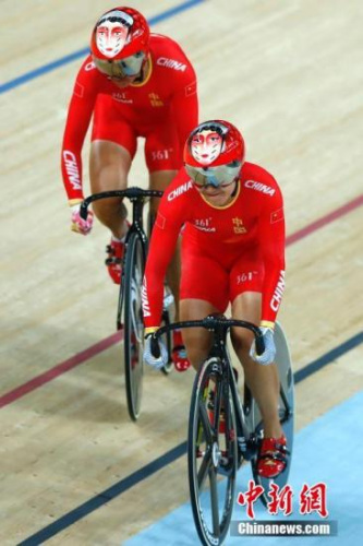 當?shù)貢r間8月12日,里約奧運會場地自行車女子團體競速賽,中國隊戰(zhàn)勝俄羅斯隊奪得金牌。圖為中國隊在預(yù)賽中。中新網(wǎng)記者 富田 攝