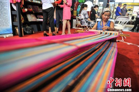 圖為佤族手工藝人表演傳統(tǒng)織錦技藝。任東攝