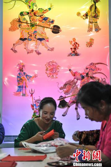 圖為市民“文博會”上學(xué)剪紙藝術(shù)。任東攝