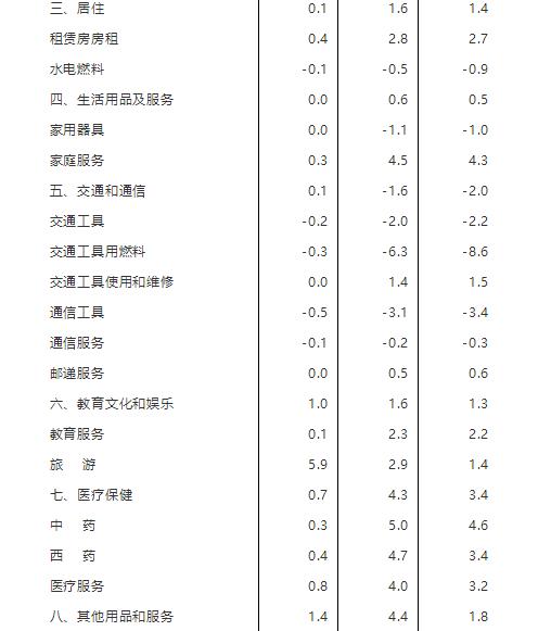 一、各類商品及服務(wù)價格同比變動情況