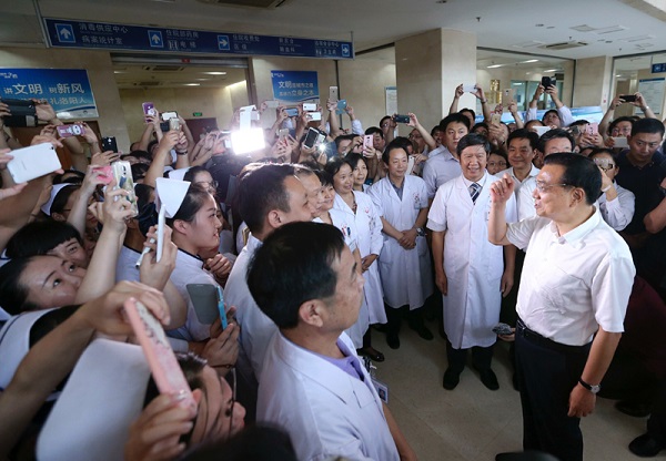 (資料圖)李克強2015年9月23日在洛陽考察河南科技大學(xué)第一附屬醫(yī)院新區(qū)醫(yī)院,詢問幾位來此看病的城鎮(zhèn)和農(nóng)村居民是否都有醫(yī)保,以及醫(yī)藥費報銷額度和自費比例等情況??偫碚f,健康是幸福的基礎(chǔ),生命是平等的,無論是城鎮(zhèn)居民、職工還是農(nóng)民,人人都應(yīng)享有醫(yī)保服務(wù)。