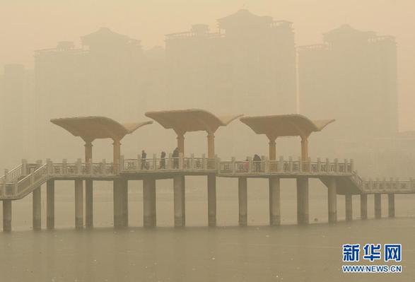 圖為霧霾中的石家莊。新華社發(fā)(牟宇 攝)