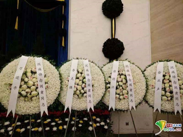 中國青年網(wǎng)北京2月18日電(記者張炎良 李拓 杜美 辰開可)今天上午,著名藝術(shù)家、空政文工團創(chuàng)作員閻肅同志遺體告別儀式在北京八寶山革命公墓舉行。習近平、李克強、張德江、俞正聲、劉云山、王岐山、張高麗等獻花圈。