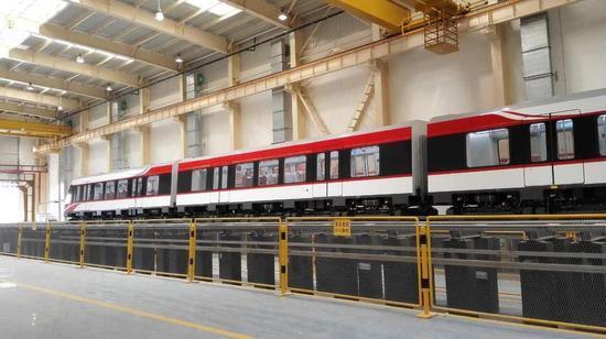 磁浮列車正式開通后,全線將由藍(lán)白和紅白相間的5輛列車運(yùn)行,每十分鐘雙向開行一趟列車。