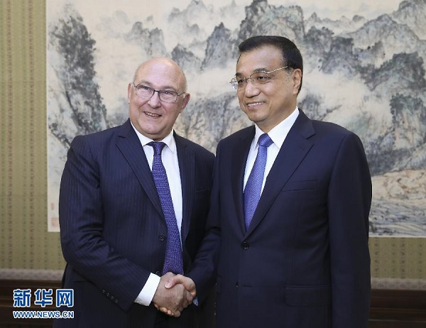 新華網(wǎng)北京9月18日電(記者侯麗軍)國(guó)務(wù)院總理李克強(qiáng)18日下午在中南海紫光閣會(huì)見(jiàn)來(lái)華出席第三次中法高級(jí)別經(jīng)濟(jì)財(cái)金對(duì)話的法國(guó)財(cái)長(zhǎng)薩潘。