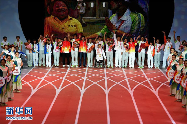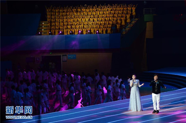 9月19日拍攝的閉幕式上的文藝表演。當(dāng)日,中華人民共和國第九屆殘疾人運動會暨第六屆特殊奧林匹克運動會在四川省成都市閉幕。新華社記者薛玉斌攝