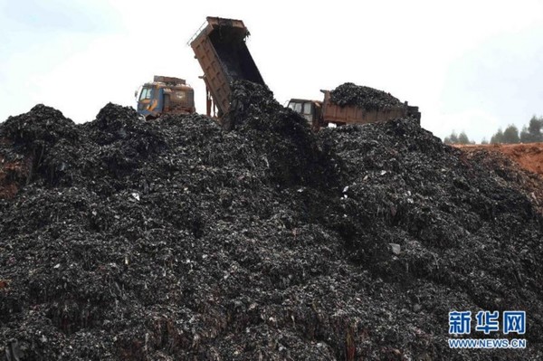 位于五象嶺的城南垃圾填埋場(chǎng)是廣西南寧市唯一一個(gè)垃圾填埋場(chǎng)。今年入夏以來(lái),城南垃圾填埋場(chǎng)平均每天約有440輛次垃圾車進(jìn)出填埋場(chǎng),日填埋量突破3000噸已成為常態(tài),最高達(dá)3600噸,約為填埋場(chǎng)設(shè)計(jì)的日處理能力1200噸的3倍。南寧市除少量餐廚垃圾外,超過(guò)95%的生活垃圾都被直接送到城南垃圾填埋場(chǎng)進(jìn)行填埋。目前,城南垃圾填埋場(chǎng)已不堪重負(fù)幾近滿場(chǎng),如新的填埋場(chǎng)或垃圾處理方式仍未有著落,未來(lái)兩年南寧或?qū)⒚媾R“垃圾圍城”。新華社記者周華攝