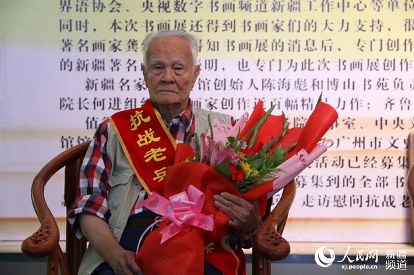 當日,曾任過白求恩的臨時翻譯盧璋;黃埔第17期的抗戰(zhàn)老兵彭煥揚;原蘭州第八戰(zhàn)區(qū)上尉鐘梓林;滇緬公路上的“南僑機工”第九中隊“華僑先鋒大隊”上尉隊長李民生四位當年的抗戰(zhàn)老兵也到現(xiàn)場,參加本次書畫展。本次書畫展還得到書畫家們的大力支持,很多書畫名家潛心創(chuàng)作,積極參與。中國美術家協(xié)會會員、國家一級美術師、享受國務院津貼的新疆著名畫家龔建新,得知書畫展的消息后,專門創(chuàng)作出一幅《醉打山門》的畫作,還有中國美術家協(xié)會會員、新疆美術家協(xié)會副主席、享受國務院津貼的新疆著名畫家鄶振明,也專門為此次書畫展創(chuàng)作了一幅極具代表性和感染力的佳作——《松山一九四四》。新疆知名書畫家創(chuàng)作出百余幅書畫精品助力此次書畫展及參與慰問抗戰(zhàn)老兵活動。