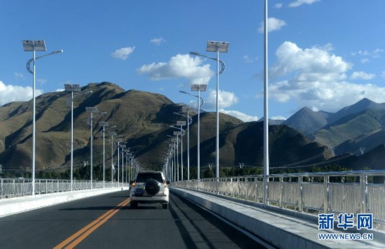 拉薩河上的公路橋——達(dá)孜大橋(2015年8月8日攝)。新華社記者覺(jué)果攝