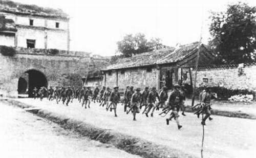 圖為駐守北平宛平城的中國(guó)軍隊(duì)奔赴盧溝橋抵抗日軍。
