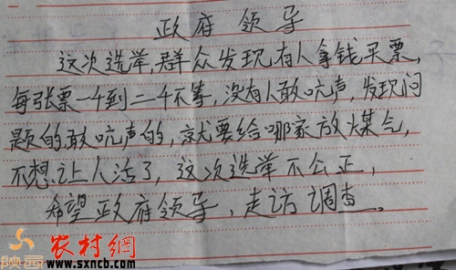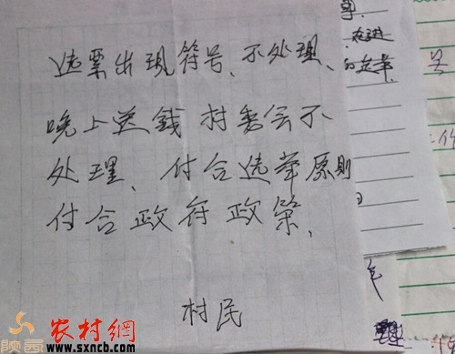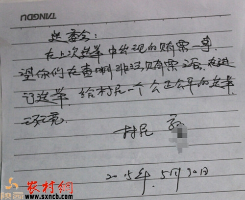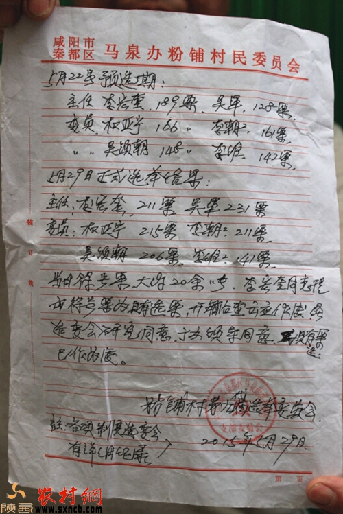 近日,正值第九屆村民委員會選換屆選舉之際,咸陽市秦都區(qū)馬泉街道辦事處粉鋪村村民向陜西農(nóng)村報(bào)(網(wǎng))反映,該村在本次換屆選舉中有人賄選,并在選票上作出了記號。對此,記者進(jìn)行了情況調(diào)查。