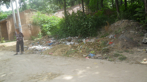 隨后記者驅(qū)車到了尤河上游周邊的張坡村、周坡村、田家坡村、張嘴村等,在村中均沒有發(fā)現(xiàn)一個(gè)垃圾箱,村中的垃圾都是隨意亂扔。行至田家坡村,記者正好見到有幾個(gè)師傅為村里修排水渠的,排水渠直通尤河,不可思議的是距排水渠不遠(yuǎn)的坡上就是垃圾堆而且渠兩邊也有成堆垃圾,試問碰到下雨天這些垃圾是否會(huì)被沖到尤河里呢?