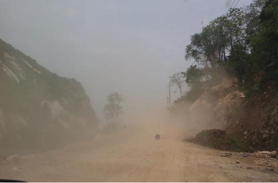乘著車沿著華陰市縣城通往羅敷鎮(zhèn)、華陽(yáng)鄉(xiāng)的202省道前行,一路上空氣質(zhì)量非常好,這是山區(qū)縣的特點(diǎn)。公路兩旁的山上林木郁郁蔥蔥。緊挨公路邊的山體,不時(shí)可以看到新開挖的山路,途徑幾個(gè)鎮(zhèn),這樣開挖的山路不下數(shù)十條。