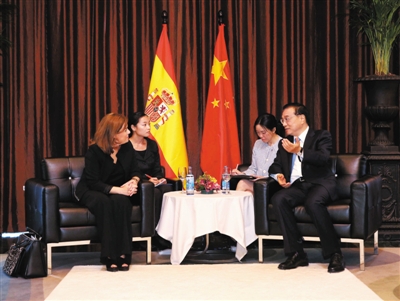 德圣瑪麗亞代表西班牙政府和拉霍伊首相熱烈歡迎李克強總理過境西班牙。德圣瑪麗亞表示,愿進一步拓展基礎設施建設、能源、化工等領域合作。