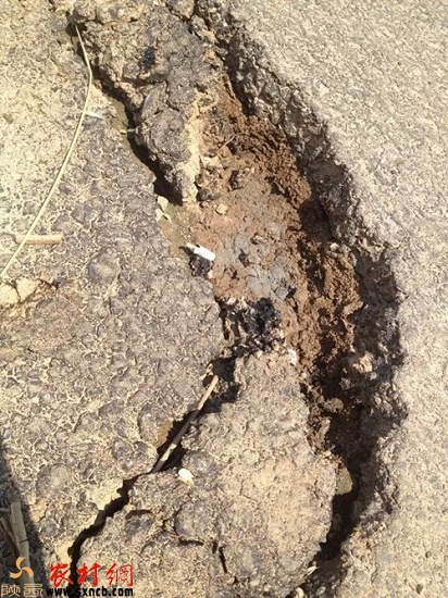 據(jù)村民講,這條路是去年七八月份開始動工修建的。從龍家溝村往下,進(jìn)了龍家溝,在橋頭南側(cè),一個一尺見方的黑洞豁然入目,橋路對接處明顯的粗糙。而在橋都以東的路邊,被雨水沖刷過的路面,底下的原路面裸露在外,記者順手從路邊就摳下一塊瀝青。
