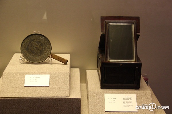 這面銅鏡之前少有展出,為了保證文物的安全,博物院的工作人員為這面鏡子制作了專門的保護(hù)殼。