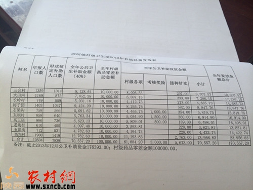 這就是村醫(yī)所說(shuō)的一個(gè)蘿卜兩頭切,人口切掉25%,接下來(lái)衛(wèi)生院又切掉25%的公共衛(wèi)生服務(wù)費(fèi)。也就是說(shuō)西河鎮(zhèn)財(cái)政核定補(bǔ)助總?cè)藬?shù)7839人,7839×12元=94068元,94068元×25%=23517元,那么有23517元被西河鎮(zhèn)衛(wèi)生院切掉。