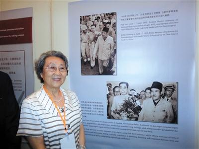 4月23日,蘇加諾(印尼建國領(lǐng)袖)-周恩來紀念亞非會議圖片展在印尼首都雅加達舉行,周恩來侄女周秉德女士對新京報記者表示,很感動當?shù)厝A人做這件事情,昨天(22日)習近平主席的講話就是萬隆會議精神的傳承。