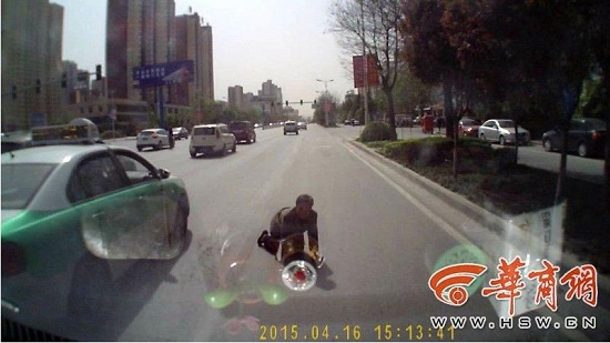 4月17日上午,華商報記者聯(lián)系到網(wǎng)友“創(chuàng)業(yè)者李鑫”李先生。李先生說,當(dāng)天下午3時許,他在世紀(jì)大道從東往西行駛,走到灃渭世紀(jì)中心附近時,看見十多米處一位60多歲的老太太在馬路邊慢慢行走,剛開始以為她要過馬路,便有意識減速慢行。結(jié)果沒走幾步,老太太卻突然斜沖出來倒在他車前一米多遠(yuǎn)的地方,并向已經(jīng)停下的車子慢慢爬去。見狀,他趕緊將車倒后繞開老太太開走,老太太隨即也慢慢站起來。