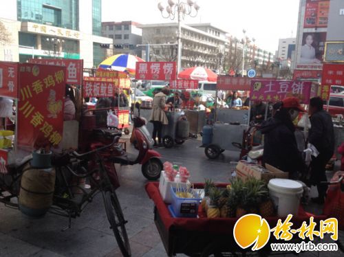 新建路是榆林市區(qū)最繁華的商業(yè)街,每逢節(jié)假日,商業(yè)街上人流如織。毗鄰新建路的世紀(jì)廣場(chǎng),每逢節(jié)假日,也會(huì)被各種小吃攤點(diǎn)等占據(jù),不但影響市民的出行,有的小推車還配備液化氣罐,存在一定的安全隱患。