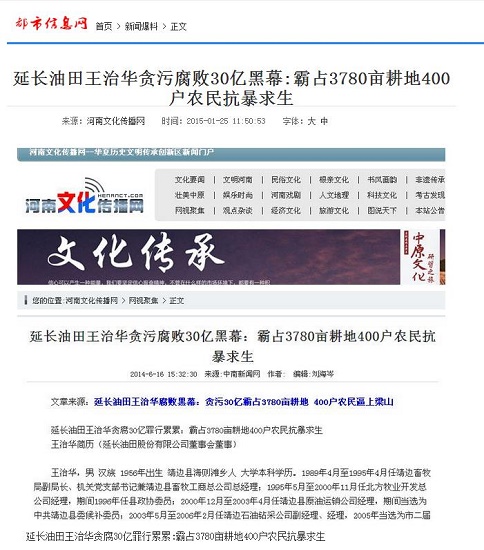 延長油田王治華貪腐30億罪行累累:霸占3780畝耕地400戶農(nóng)民抗暴求生